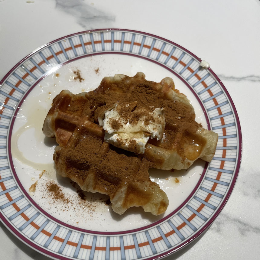 첫 크로플엔 크래프트 크림치즈+아가베시럽+시나몬가루를 좀 얹어서 먹었는데